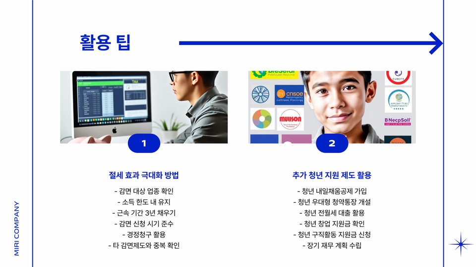 - 청년 소득세 감면은 만 15세에서 34세 청년에게 적용됩니다.