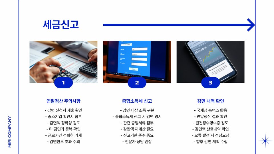 - 세금 신고 시 감면 내역을 정확히 기재해야 혜택을 누릴 수 있습니다.