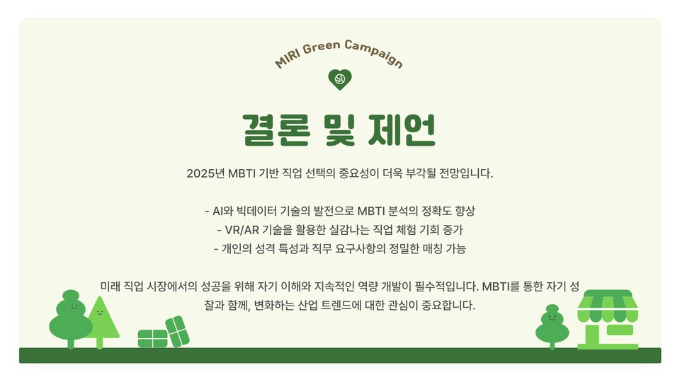 결론적으로, 2025년을 맞이하여 자신의 MBTI 유형에 맞는 직업을 찾는 것은 매우 중요합니다. 각 유형별로 추천 직업을 통해 독자 여러분이 자신에게 맞는 직업을 탐색하는 데 도움이 되기를 바랍니다. 자신의 성격을 잘 이해하고, 이를 바탕으로 직업을 선택하는 것이 행복한 직장 생활을 위한 초석이 될 것입니다.