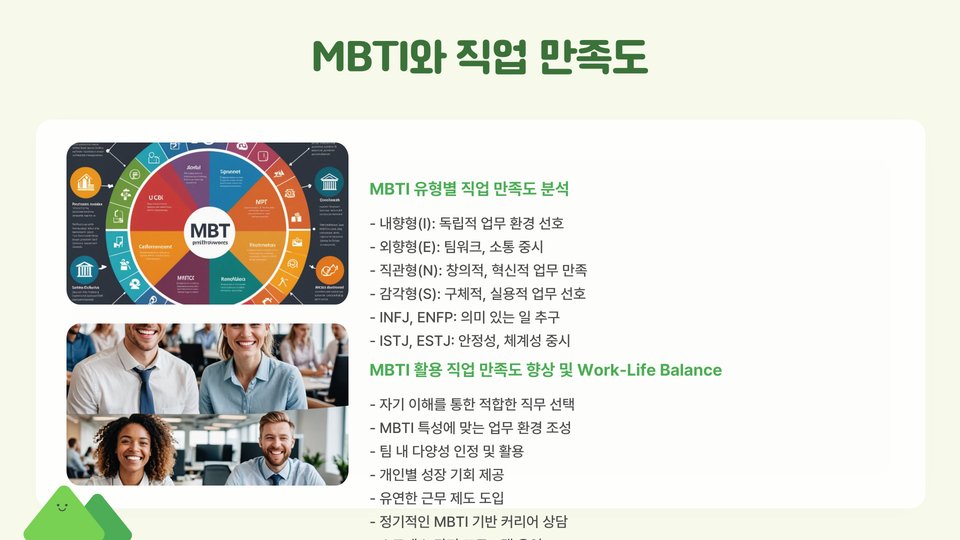 MBTI는 개인의 성격 유형을 기반으로 다양한 직업을 추천하는 데 유용한 도구입니다. 특히 2025년에는 변화하는 직업 시장과 기술 발전으로 인해 각 성격 유형에 맞는 직업 선택이 더욱 중요해질 것입니다. 이번 포스트에서는 다양한 MBTI 유형에 적합한 직업을 추천해드리겠습니다.