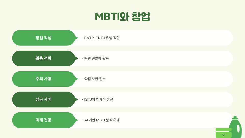 | ENTP | 스타트업 창립자, 마케팅 전문가, 컨설턴트 |