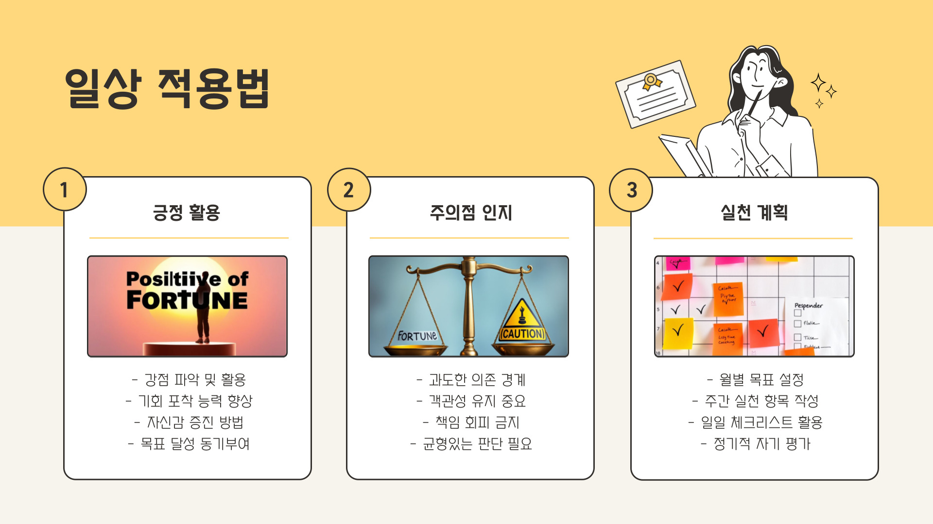 - 운세를 기반으로 실천 계획을 세우고 상황에 맞게 조정하세요.
