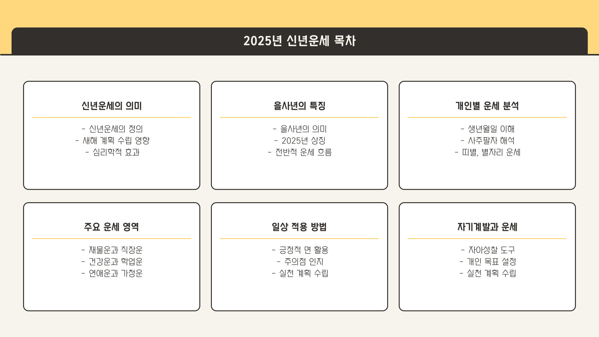 Tags: 신년운세, 2025년, 목표 설정, 자기 반성, 운세 읽기, 한국 전통, 음력, 띠, 긍정적인 마인드, 운세 활용