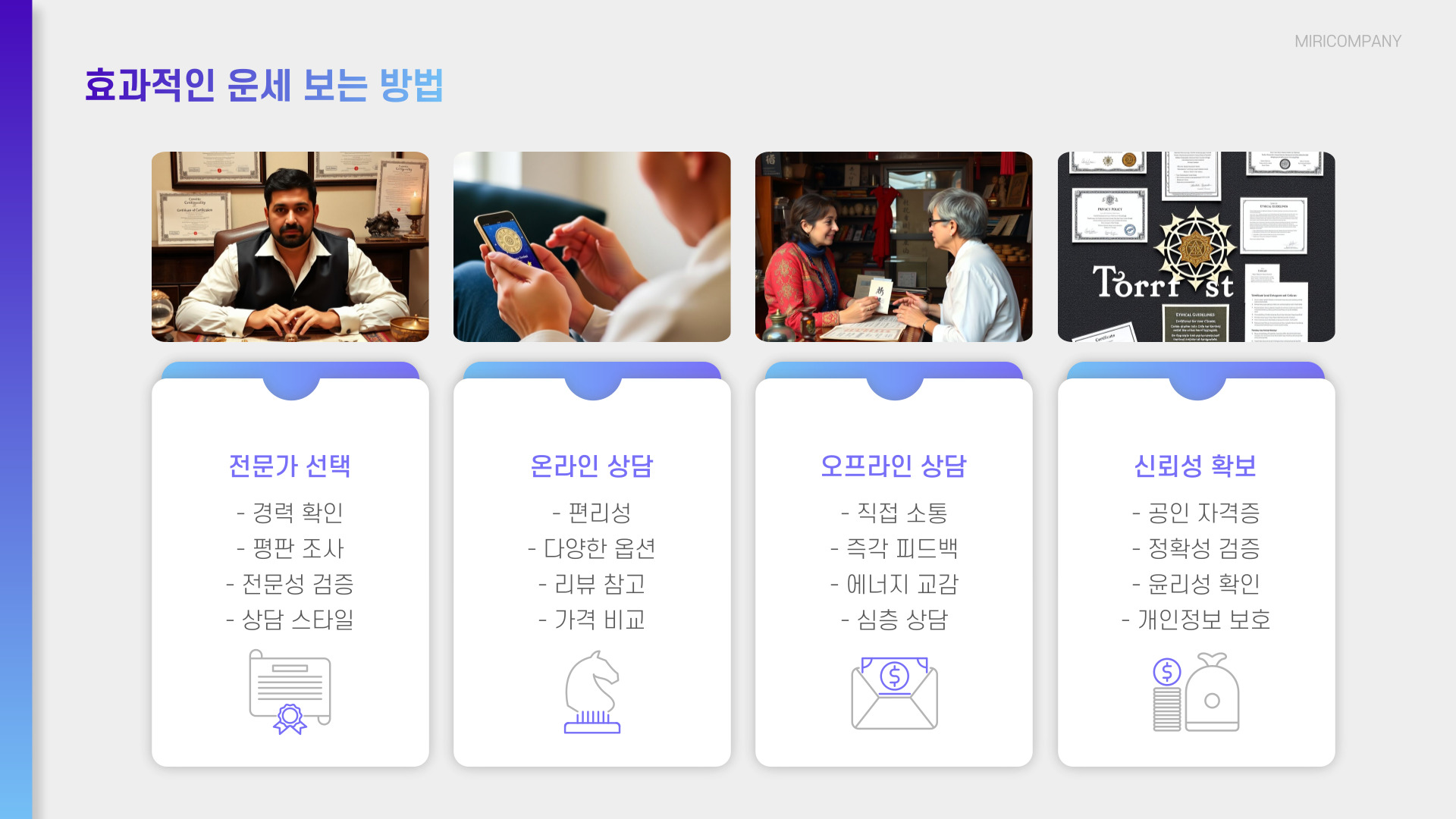 신년운세를 전문가에게 의뢰하는 것도 좋지만, 스스로 운세를 분석하는 것도 큰 도움이 됩니다. 운세를 스스로 분석하는 과정은 자신의 내면을 들여다보고 인생의 방향성을 찾는 계기가 될 수 있습니다. 신년운세에 대한 자료를 다양하게 수집하고, 자신의 경험과 연결 지어보세요. 이를 통해 더 깊이 있는 통찰을 얻고, 자신만의 운세 해석이 가능해집니다.