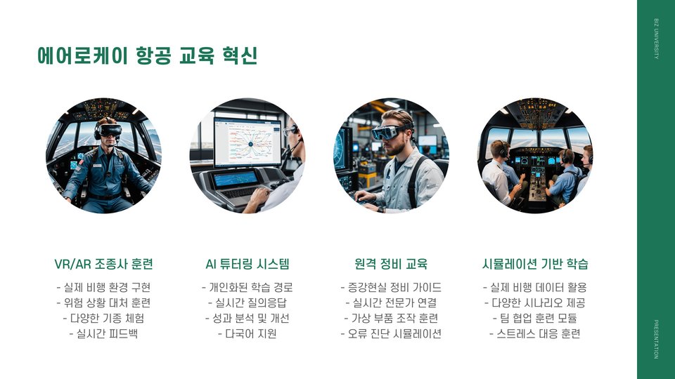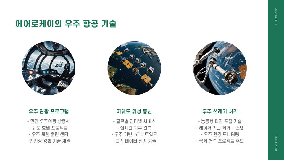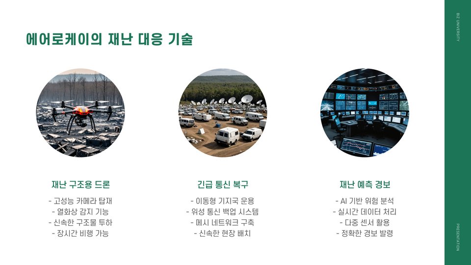 - 에어로케이 기술은 항공 산업 외 다양한 분야에 활용 가능