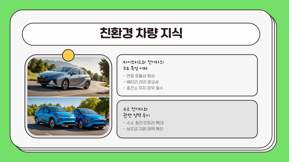 특히, 교통 신호와 표지판의 의미는 매우 중요합니다. 이러한 기본 지식 없이 실제 운전할 경우 사고의 위험이 높아질 수 있습니다. 오프라인 학원뿐만 아니라 온라인 교육 자료도 활용해 이론 지식을 쌓도록 하세요. 모의 테스트를 통해 자신의 실력을 체크하는 것도 좋은 방법입니다.