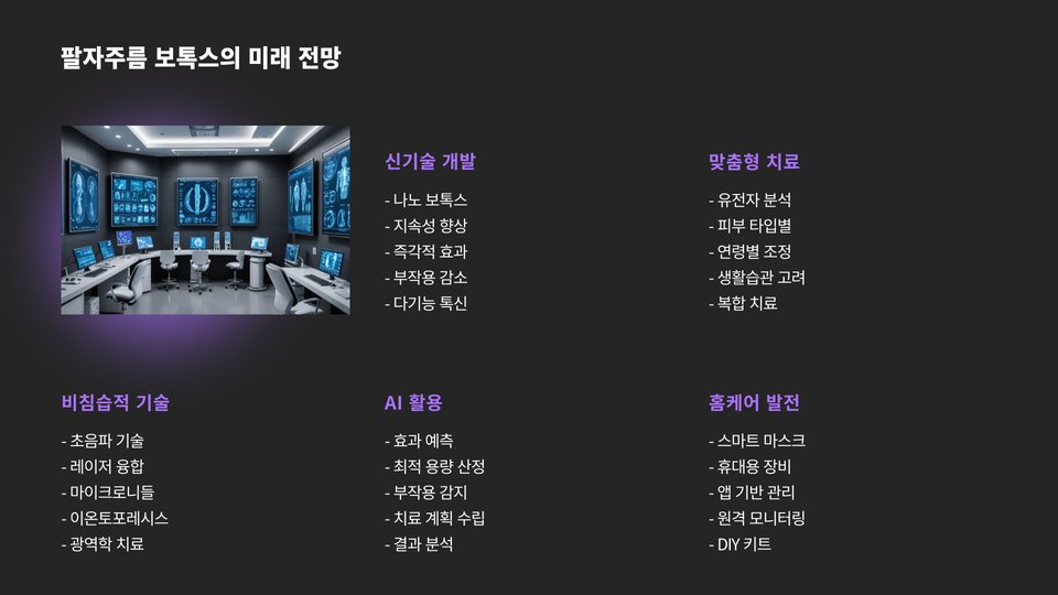 - 보톡스는 팔자주름 개선에 효과적이며, 시술 시간이 짧다.