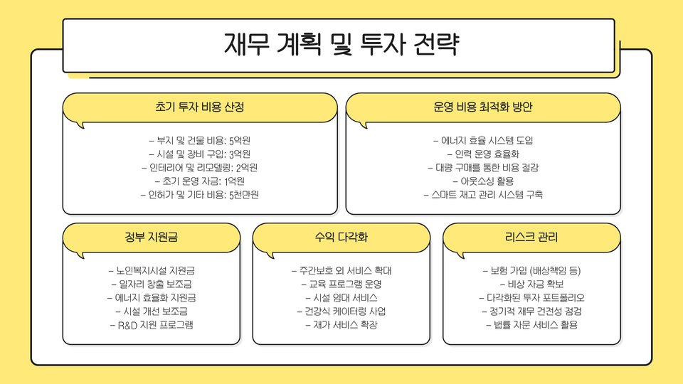 마지막으로, 이러한 센터는 정부의 지원 보조금이나 혜택을 통해 운영될 수 있어 경제적으로도 유리한 부분이 있습니다. 진정한 사회적 가치가 있는 창업 아이템이며, 기대할 수 있는 수익 또한 높습니다.