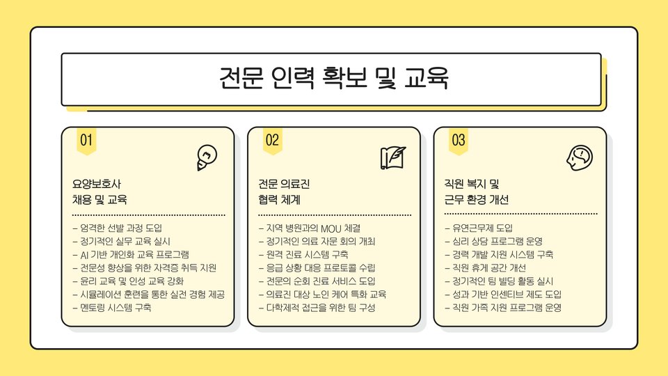 2025년의 노인 주간 보호센터 창업은 많은 기회를 제공할 것입니다. 그러나 성공하기 위해서는 체계적이고 철저한 준비가 필요합니다. 노인들의 복지를 최우선으로 생각하며, 이들이 필요로 하는 다양한 서비스를 제공하는 것이 중요합니다. 앞으로의 고령화 사회에서 노인 주간 보호센터는 필수적인 역할을 할 것이며, 이를 통해 많은 사람들이 혜택을 받을 것입니다.