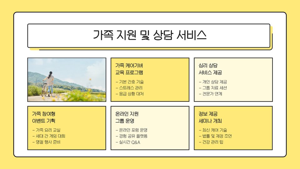 특히, 치매 예방 프로그램이나 신체활동 프로그램 등이 제공되면서, 노인들의 삶의 질을 높이는 데 기여하고 있습니다. 이러한 서비스는 가족들에게도 큰 도움이 되며, 부모님을 모시는 자녀들에게는 안심할 수 있는 환경을 제공합니다.