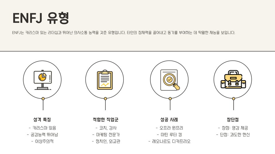 | ENFJ | 교사, 상담사 |