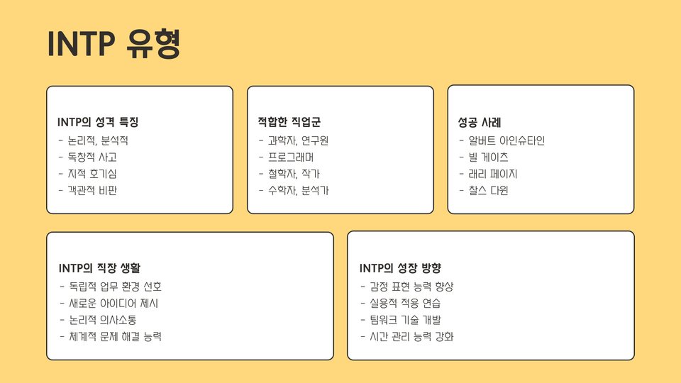 | INTP | 연구원, 프로그래머 |