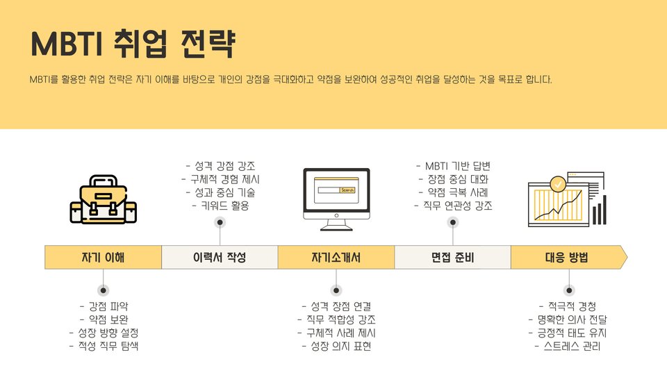 마지막으로 자기소개서와 면접 준비가 필요합니다. 자신의 성격 유형을 살려, 자신을 잘 표현할 수 있는 방법을 찾아야 합니다. 주요 성과나 프로젝트를 강조해, 고용주에게 자신의 가치를 잘 전달해야 합니다.