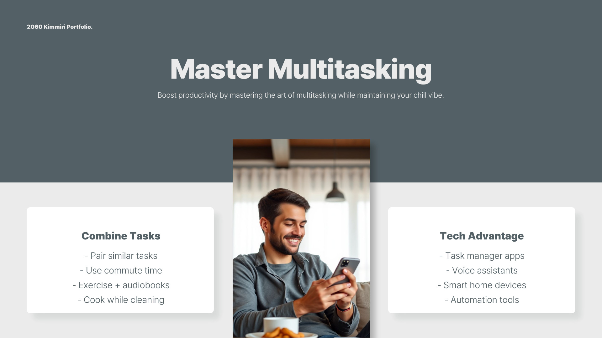 마지막으로, Chill Guy의 세 번째 시간 절약 비법은 기술 활용입니다. 스마트폰, 태블릿과 같은 모바일 기기를 적절히 활용하여 생산성을 높일 수 있습니다. 예를 들어, To-Do 리스트 애플리케이션을 사용하여 할 일을 관리하거나, 캘린더 앱을 통해 일정을 예정할 수 있습니다.