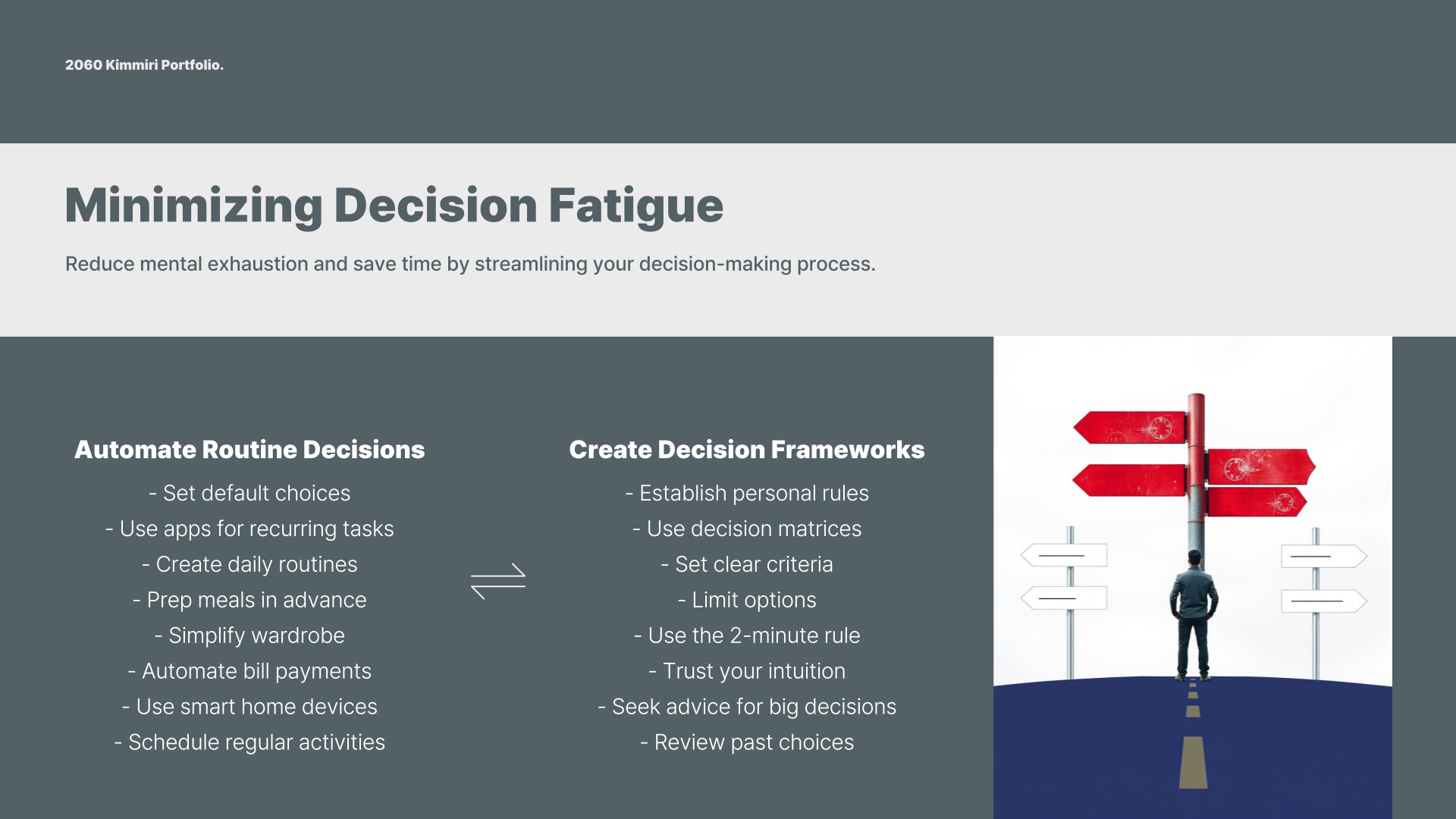 미니멀리스트 라이프스타일은 단순한 물건 정리에서 시작할 수 있지만, 궁극적으로는 시간 관리와 아울러 여러분의 가치관 역시 재조정하게 됩니다. 자신에게 진정으로 필요한 것이 무엇인지 고민해보세요. 물질적 소비를 줄이는 것이 아니라, 여러분의 삶에서 진정 중요한 것에 집중하게 해주는 것입니다.