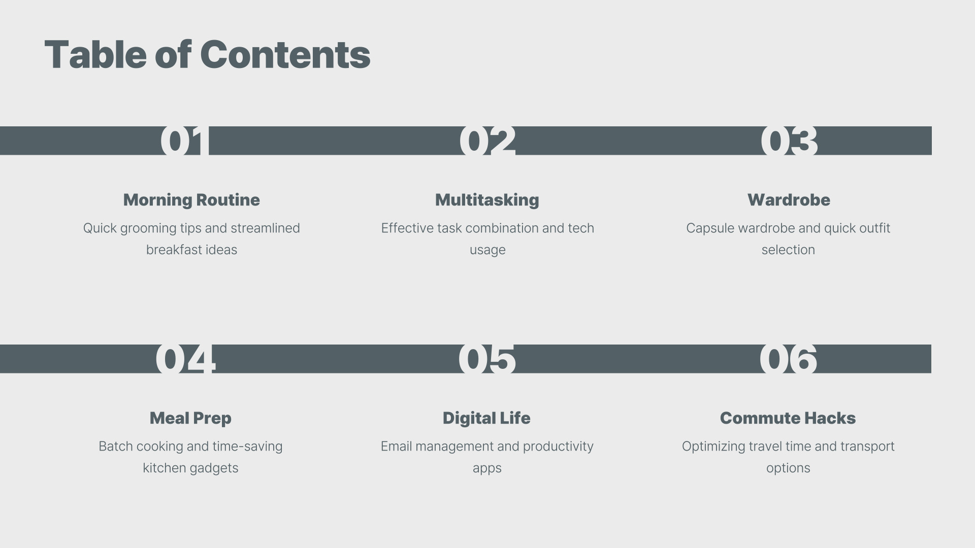 현대 사회에서 시간은 가장 소중한 자원 중 하나입니다. 나쁜 습관과 비효율적인 행동이 여러분의 하루를 소모하게 만들 수 있습니다. Chill Guy는 이런 문제를 해결할 수 있는 10분 만에 시간 절약 비법을 제공합니다. 이 비법들은 일상 속에서 쉽게 적용할 수 있으며, 여러분의 삶에 긍정적인 변화를 가져올 것입니다. 각 비법은 실제 상황에서 유용하게 사용될 수 있는 팁과 예시로 구성되어 있습니다.