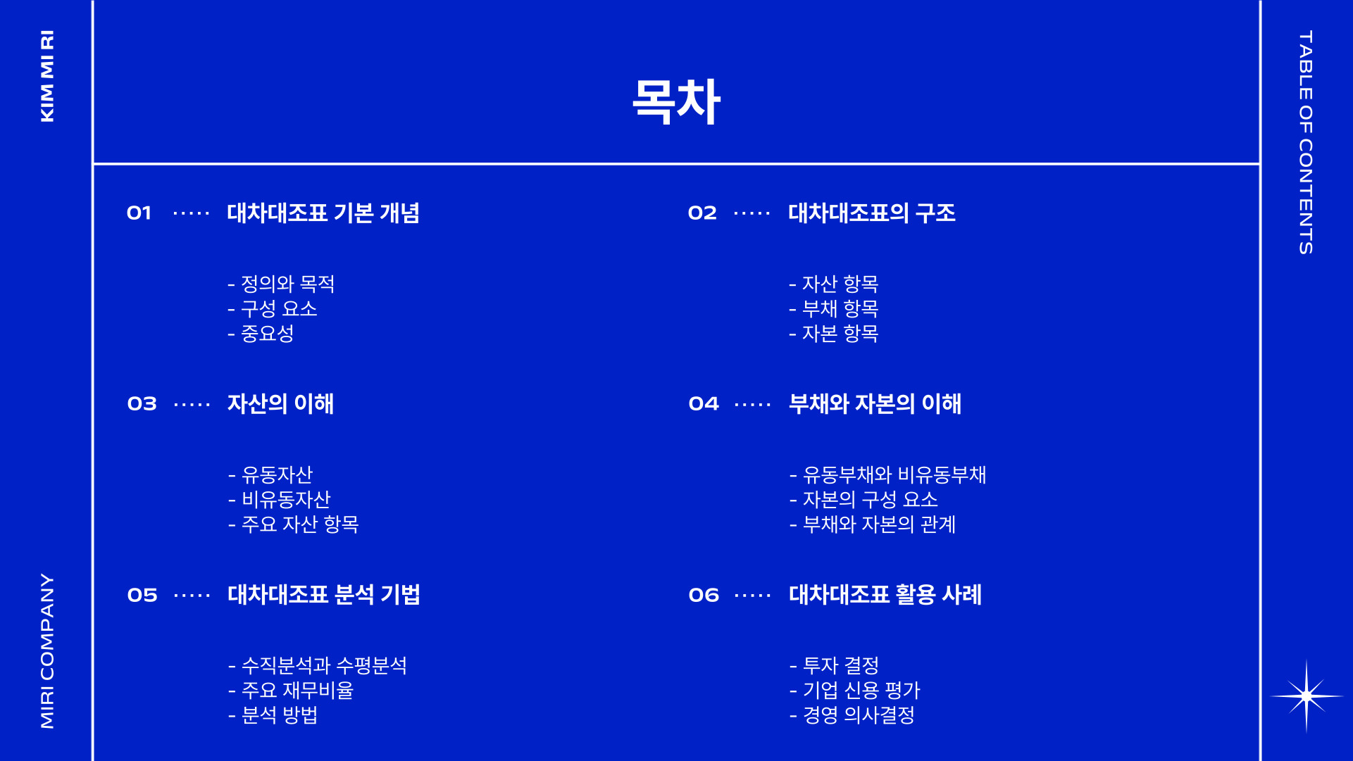 대차대조표는 기업의 재무 상태를 한눈에 볼 수 있는 중요한 문서입니다. 이는 자산, 부채, 자본을 정리하여 기업이 얼마나 안정적인지를 평가하는 데 필수적입니다. 대차대조표는 일반적으로 특정 시점의 재무 상태를 나타내며, 기업의 재무 건전성을 이해하는 데 필요한 기본적인 정보를 제공합니다. 이 문서는 재무제표의 일부분으로, 투자자와 경영자 모두에게 중요한 역할을 합니다.
