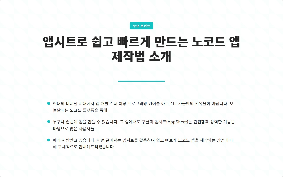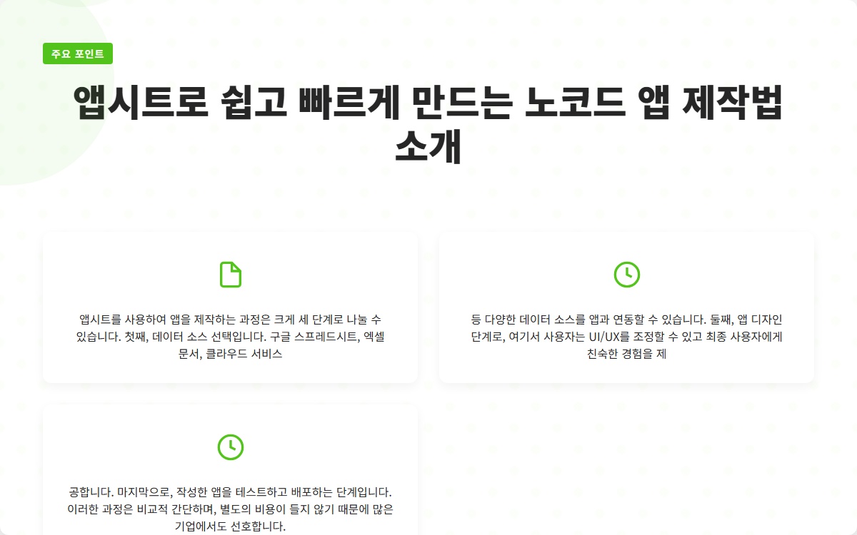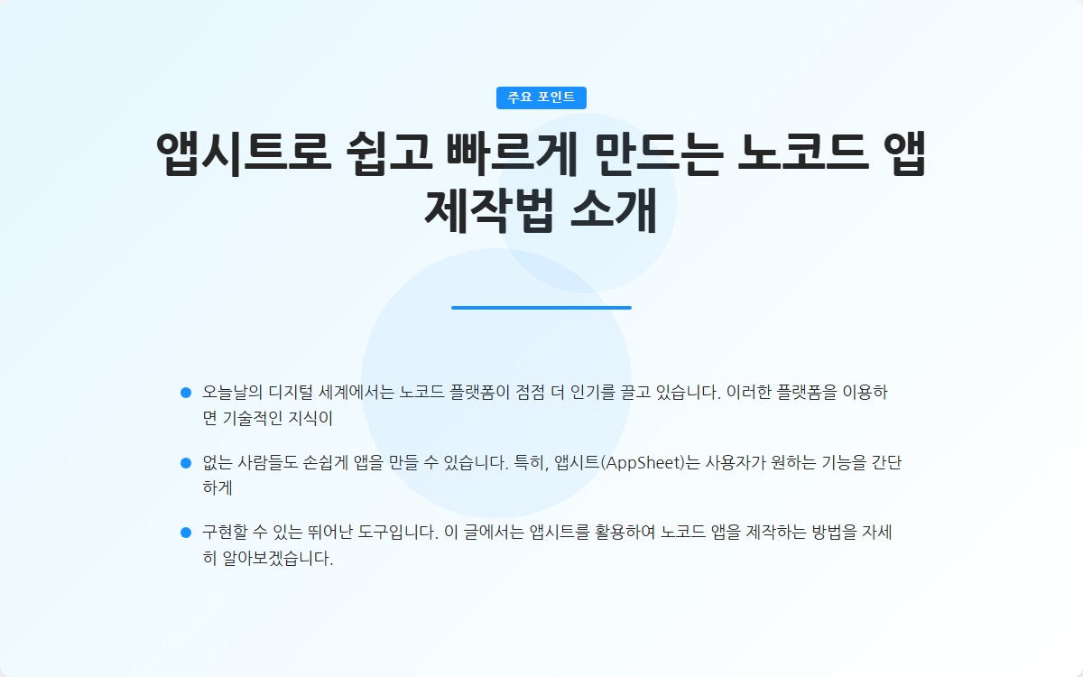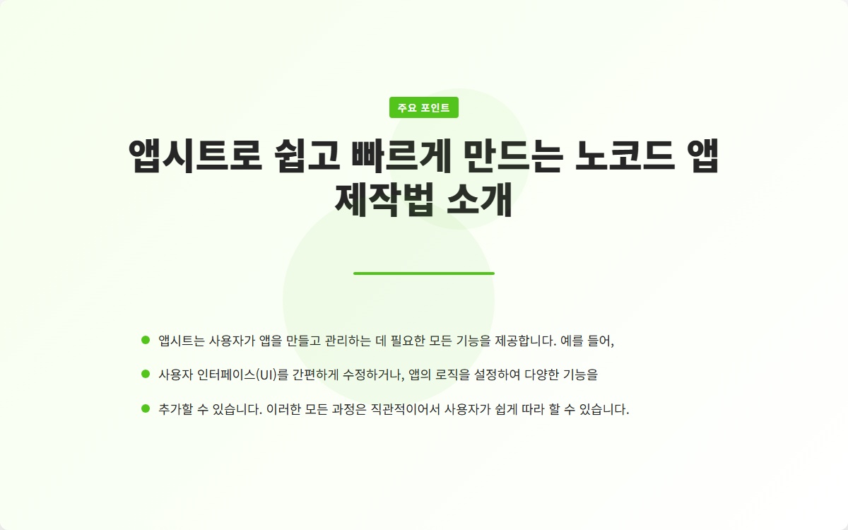 - 앱시트는 노코드 플랫폼으로, 쉽게 앱을 제작할 수 있다.