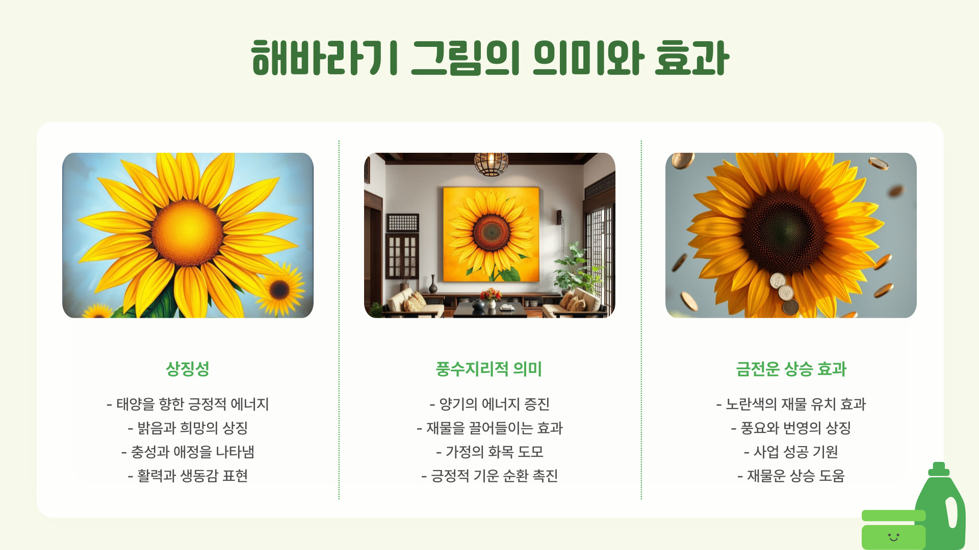 - 해바라기그림은 긍정적이고 활기찬 에너지를 제공합니다.
